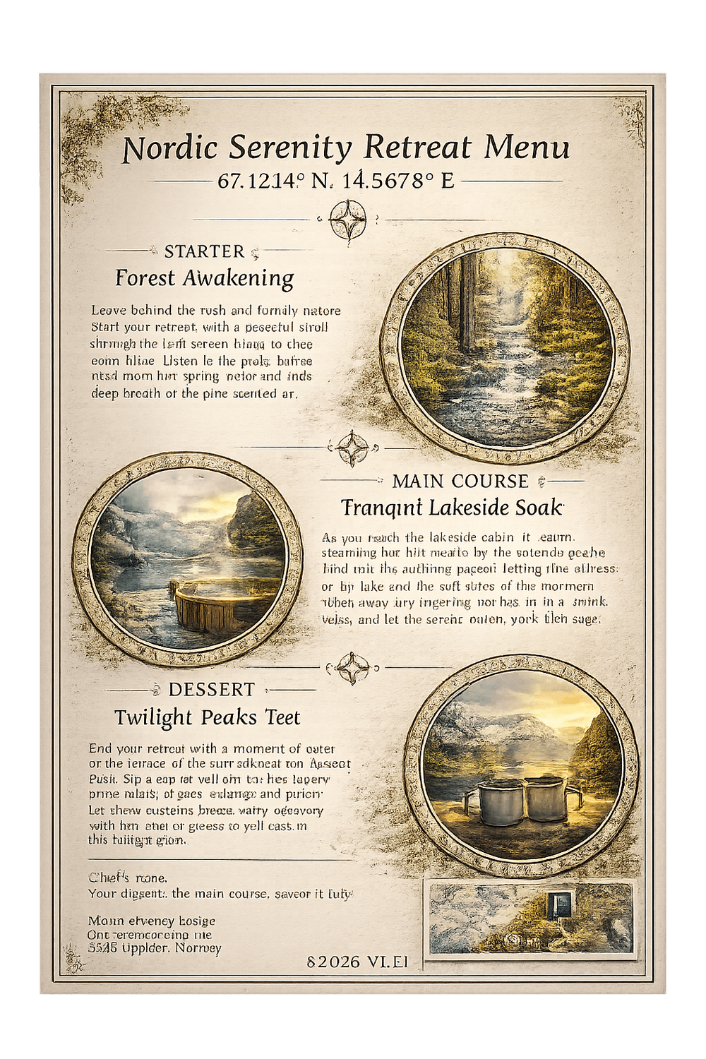 Each Menu follows a simple three-course structure: a Starter with practical tips before you arrive, a Main Course through the heart of the destination, and a Dessert â that unexpected extra that makes the difference.